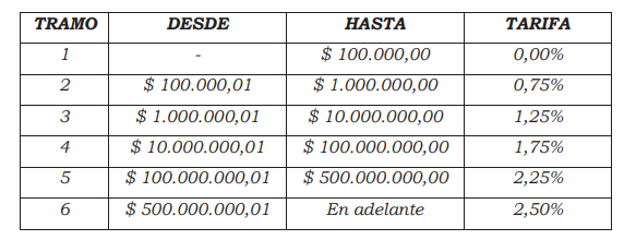 De acuerdo con el tramo por ejemplo si tengo utilidades acumuladas de US1.500.000 debo aplicar el 1.25% = 1.500.000 x 1.25% = 18.750